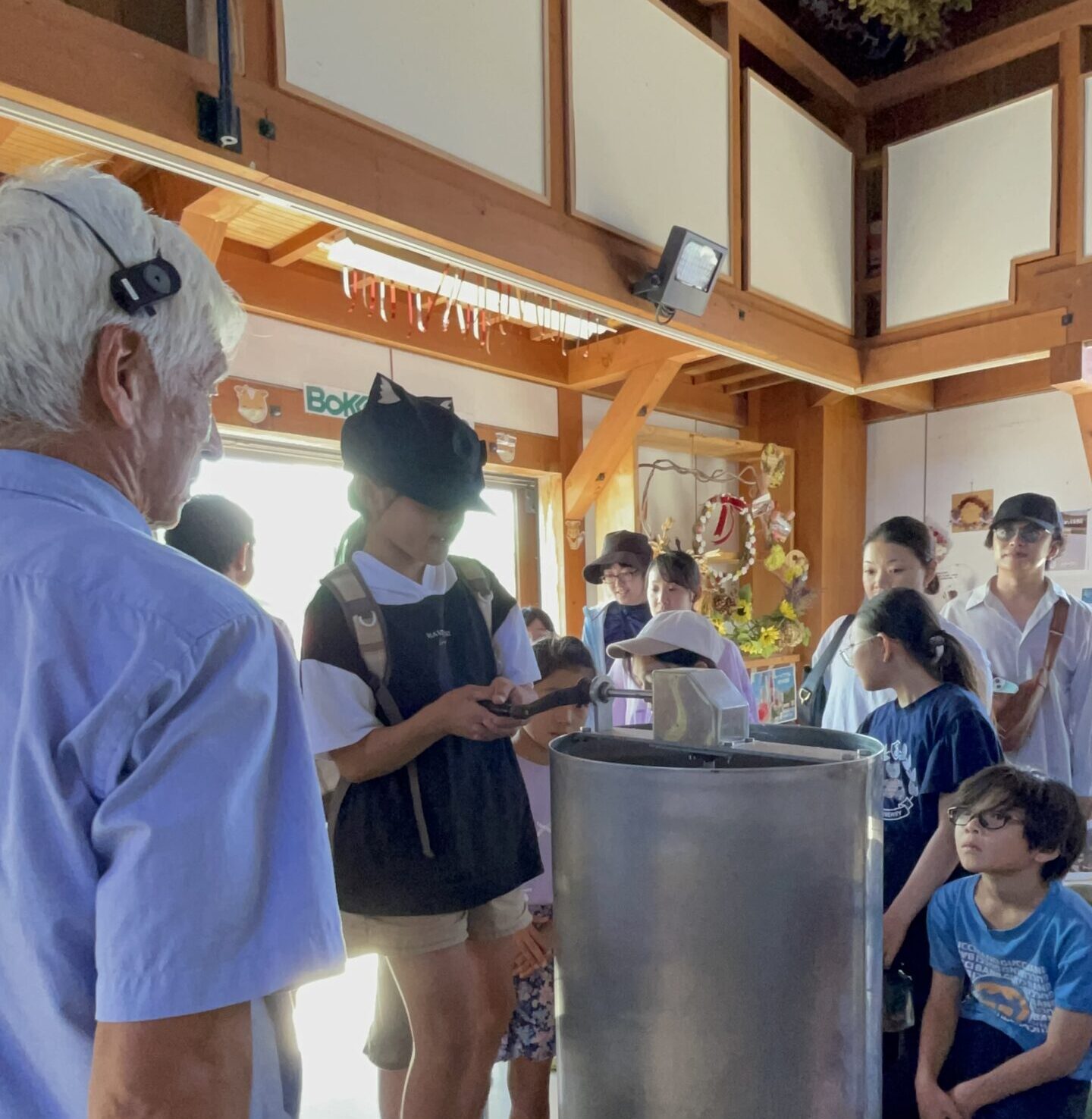 ★遠心分離機を回して、みんなでハチミツしぼり!
